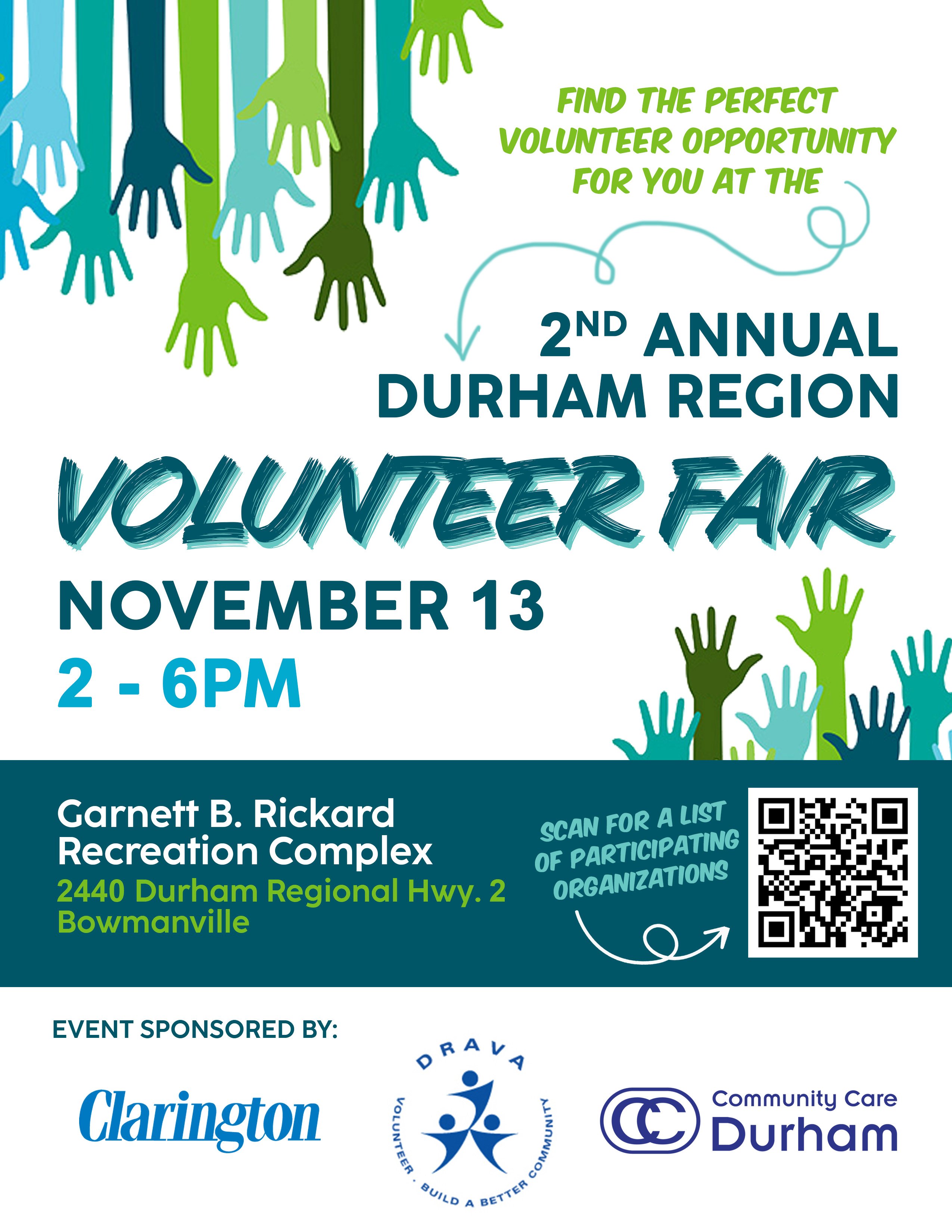 Looking to get involved in your community? The Durham Region Volunteer Fair is back for its second year, and it’s bigger and better than ever! Join us for this FREE event, where volunteers of all ages can discover a wide range of opportunities.